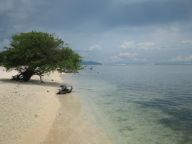 Ens instal•lem a la Gili Trawalgan (la més activa) i per primera vegada puc contemplar el que sempre m’havia imaginat com el paradís. Una illa envoltada per una sola platja de sorra blanca, aigües transparents, palmeres que cauen sobre la platja, ... L’illa està súper explotada per una banda, on durant un quilòmetre no hi ha més que restaurants, bars, hostels, internet, agències de tours, ... i clar, les platges de davant també són les més aglomerades. Tot i així, la resta l’illa, que ara per ara no hi ha pràcticament vida, les platges són ben tranquil•les; tot i que per poc temps, ja que queden pocs terrenys sense haver-hi obres que portaran a nous ressorts (sembla que aquí encara no tenen la llei de costes).
